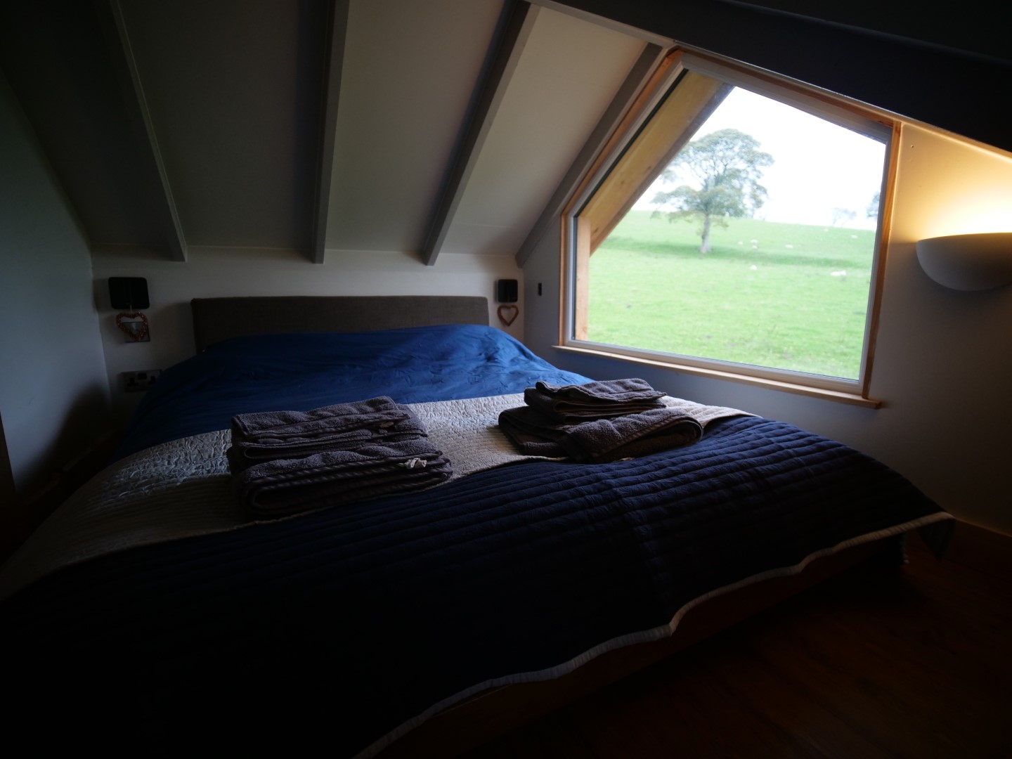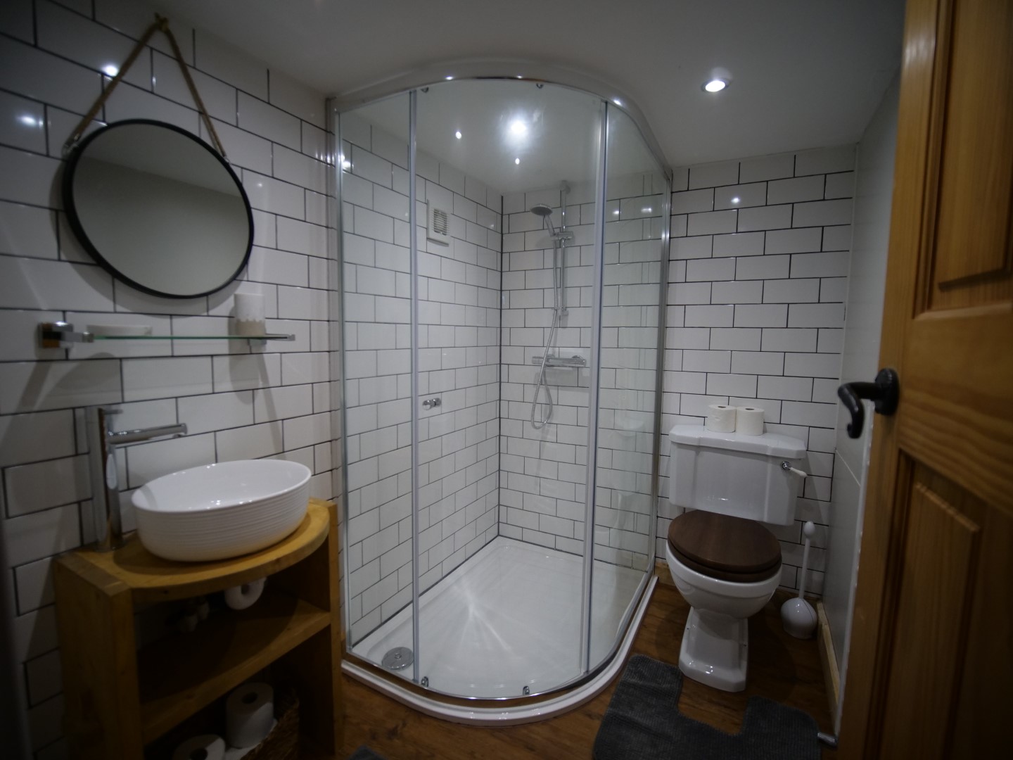 Our cute cabin has two crog-loft bedrooms, one of them has a double bed and the other is kingsize. It has central heating along with a toilet, shower and basin.